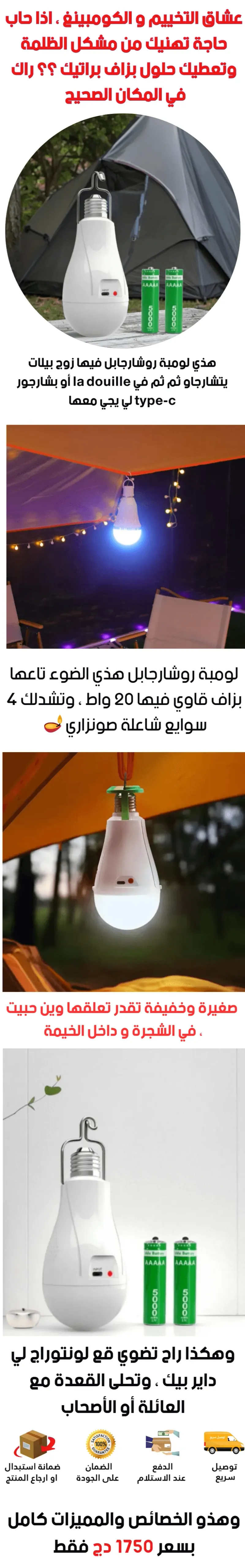مثالي جدا للسفر ، التخييم ، الطوارئ...كي تطيح اونبان ولا كي تروح عليك تريسيتي...لازم تكون عندك لامبة هذي